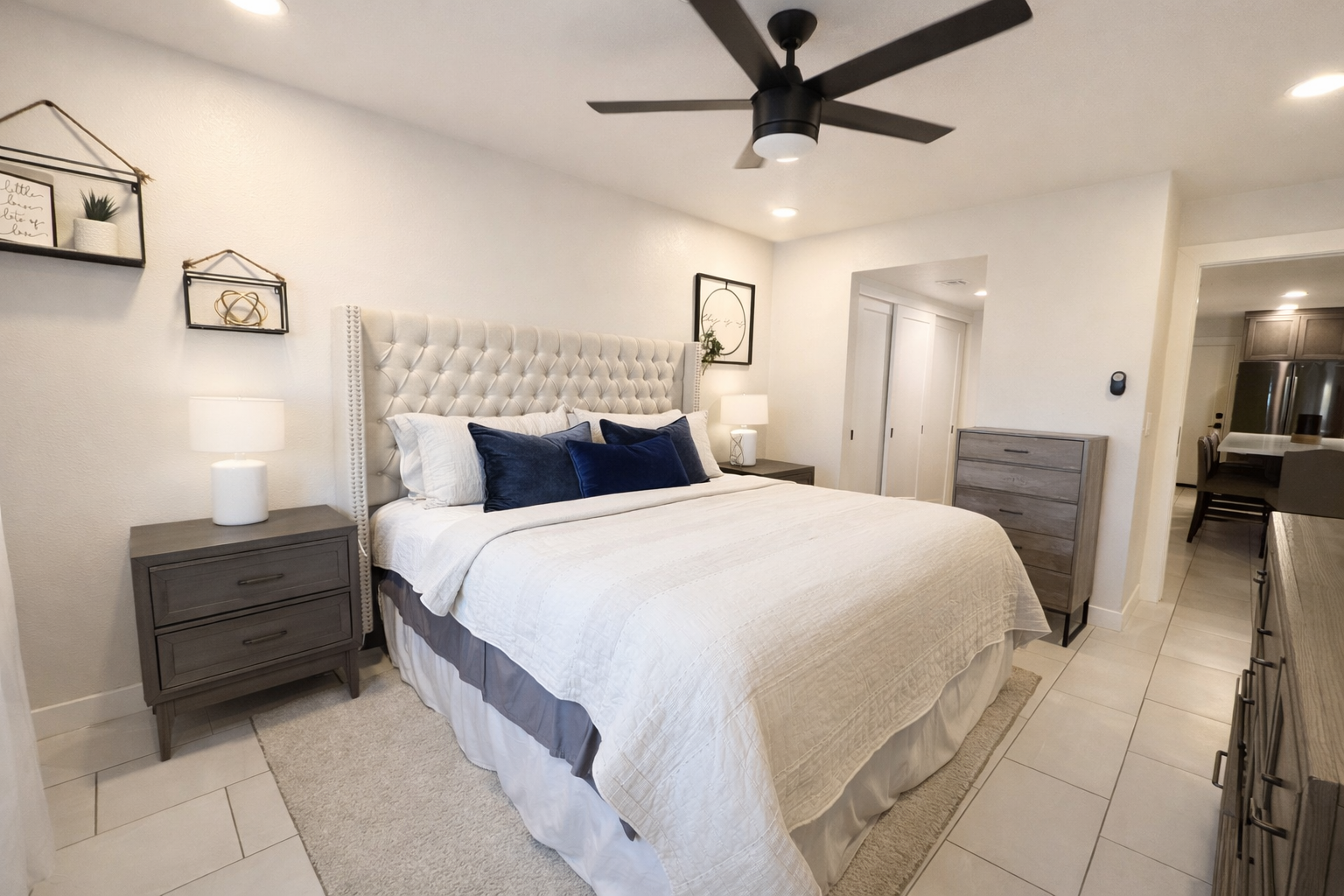 This three-bedroom, two-bathroom home has been completely updated with high-end finishes, including quartz countertops, custom cabinetry, tile flooring, and elegant marble accents throughout.